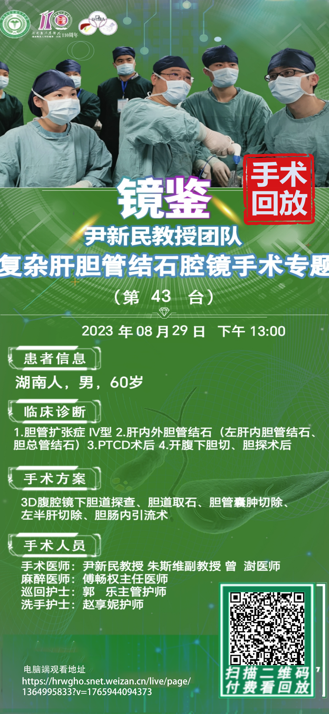 尹新民教授团队复杂肝胆管结石第42台|3D腹腔镜下再次胆道探查双镜联合取石肝门胆管整形胆肠内引流术备肝部分切除|肝内胆管多发结石并胆管扩张积气胆总管结石开腹胆囊切除胆道探查|20230828