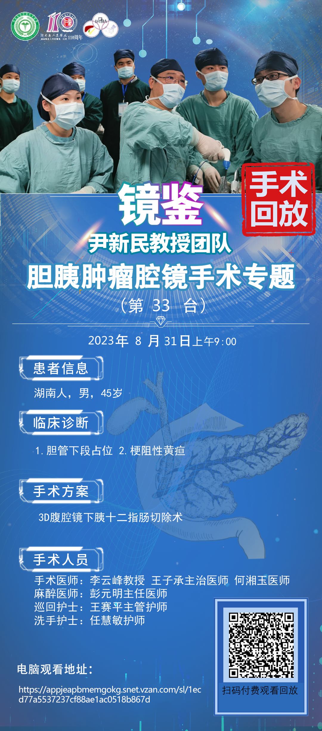 尹新民教授团队胆胰肿瘤专题第33台|腹腔镜下胰十二指肠切除术|1.胆管下段占位 2.梗阻性黄疸|20230831