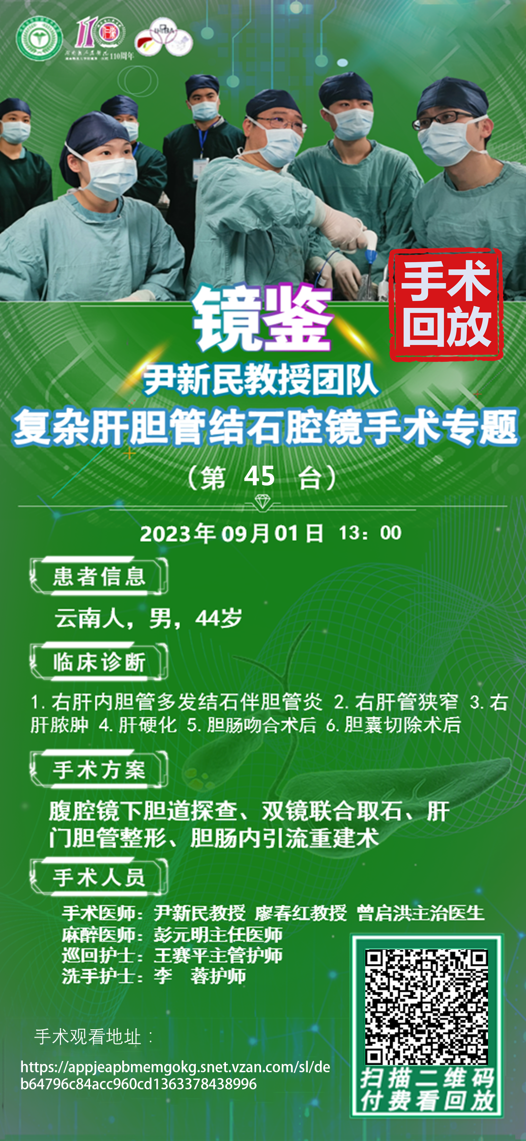 尹新民教授团队-复杂肝胆管结石腔镜手术-第45台|3D腹腔镜下再次胆道探查、左肝内叶切除、双镜联合取石、胆肠内引流重建术|20230907
