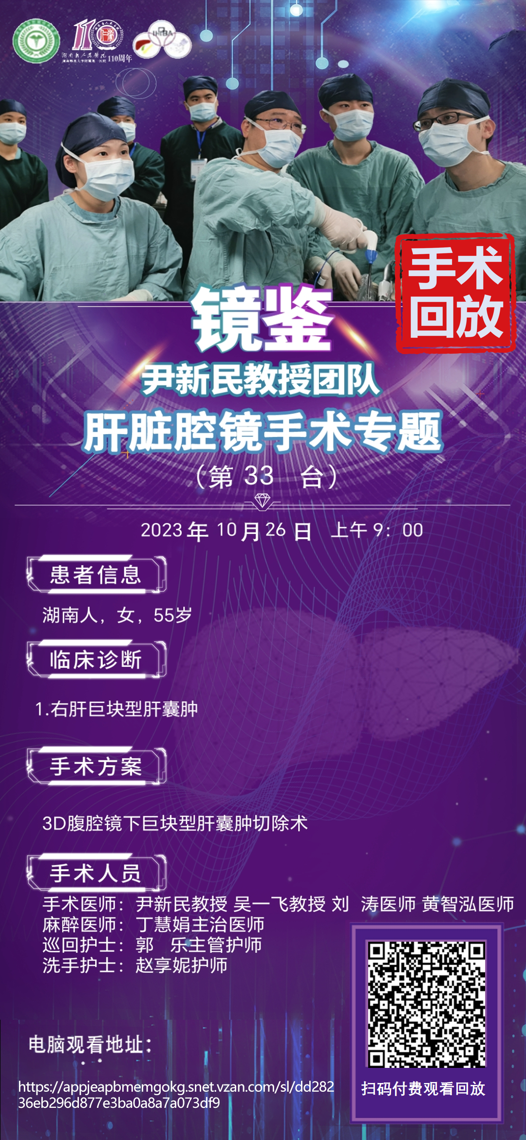 尹新民教授团队肝脏腔镜第33台|3D腹腔镜下巨块型肝囊肿切除术|1. 右肝巨块型肝囊肿|20231026