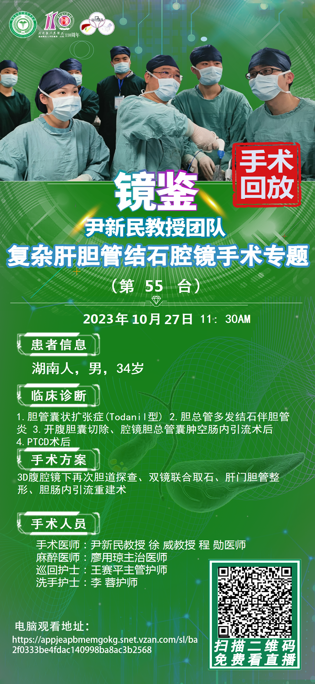 尹新民教授团队复杂肝胆管结石第55台|腹腔镜下再次胆道探查双镜联合取石肝门胆管整形胆肠内引流重建术|胆管囊状扩张症Todani I型)胆总管多发结石伴胆管炎开腹胆囊切除腔镜胆总管囊肿|20231027