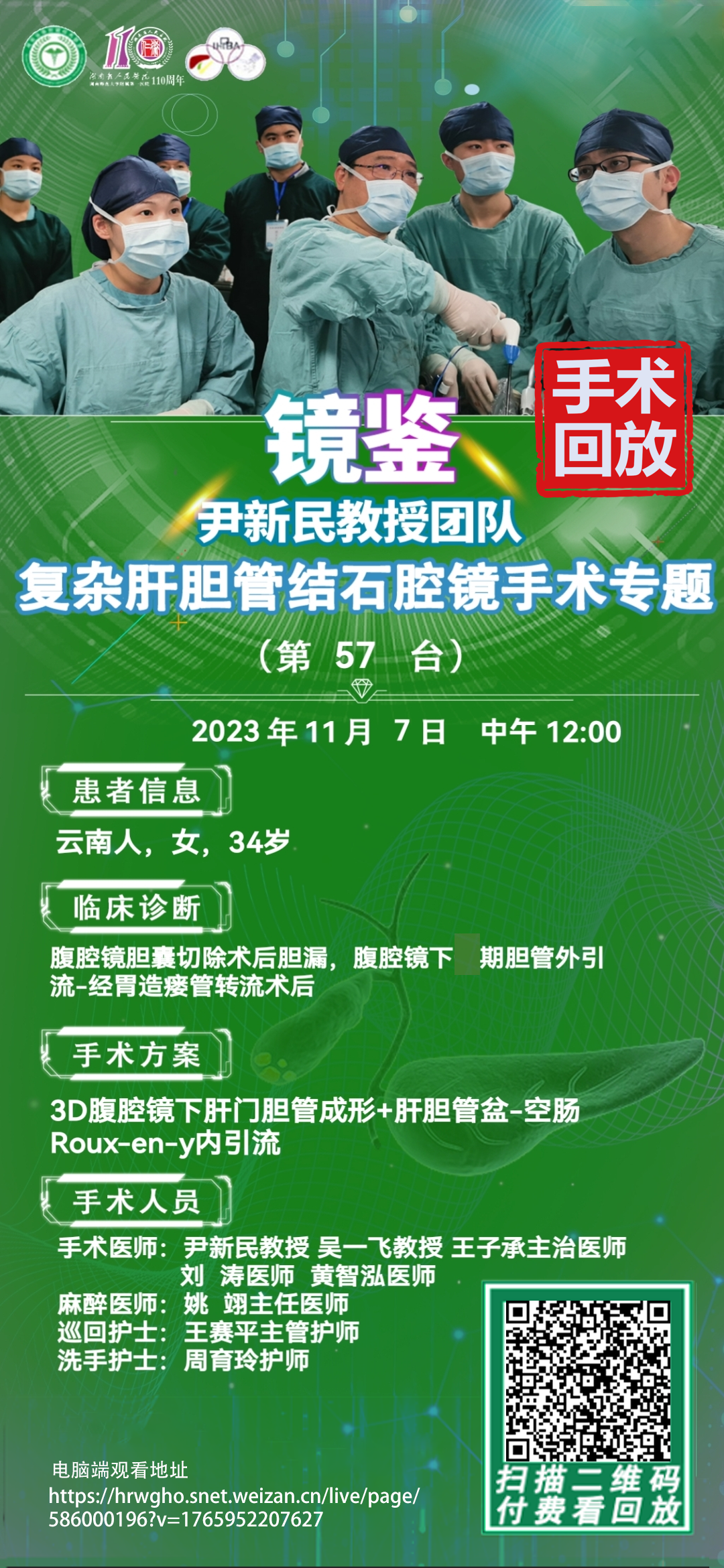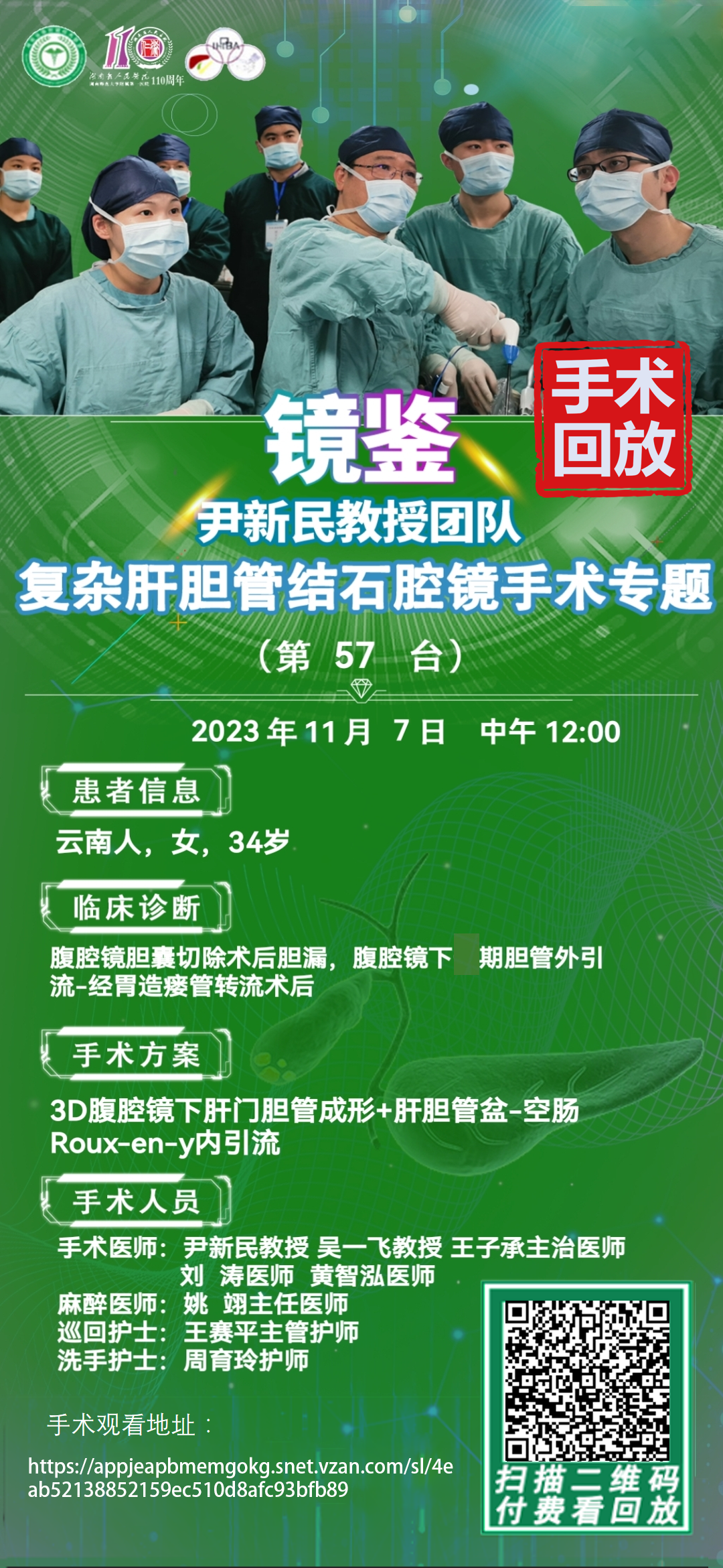 尹新民教授团队复杂肝胆管结石第57台|3D腹腔镜下胆肠吻合口狭窄切开再次胆道探查双镜联合取石肝门胆管整形胆肠内引流重建术|梗阻性黄疸胆肠吻合口狭窄并肝胆管结石腹腔镜胰十二指肠切除术后|20231107
