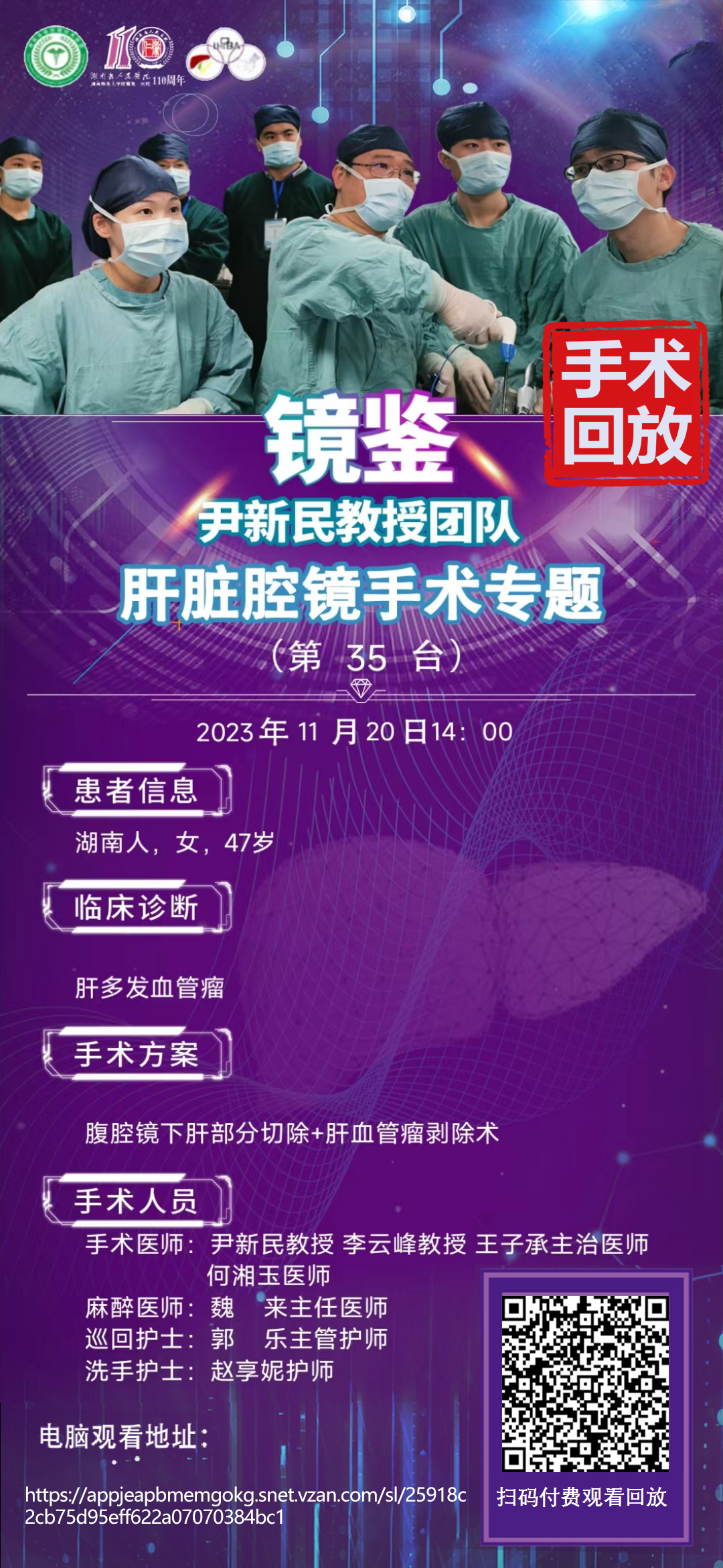 尹新民教授团队-四期肝脏腔镜手术-第35台|腹腔镜下肝部分切除+肝血管瘤剥除术|肝多发血管瘤|20231120