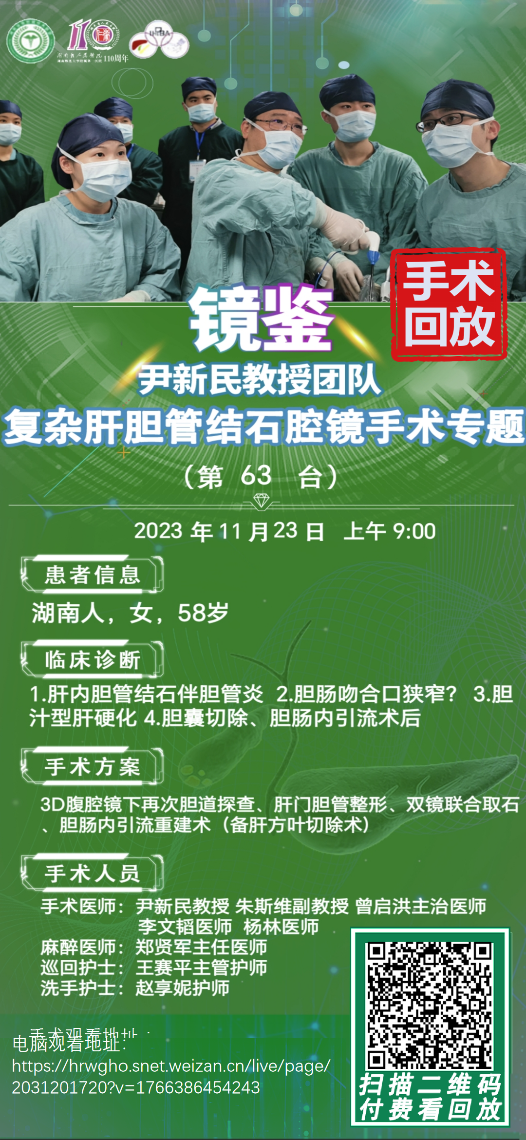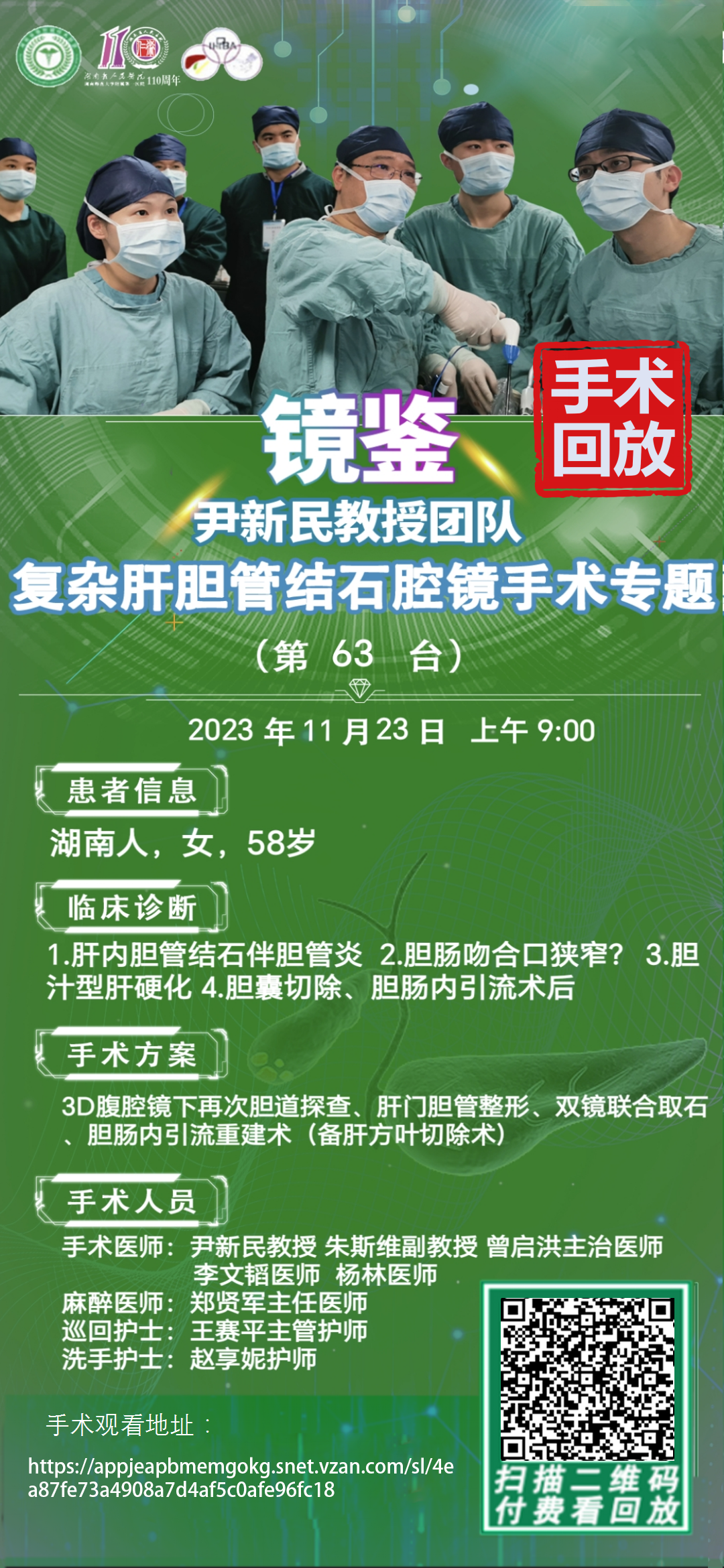 尹新民教授团队-复杂肝胆管结石腔镜手术-第63台|3D腹腔镜下再次胆道探查、肝门部胆管整形、双镜联合取石、胆肠内引流重建术||20231123