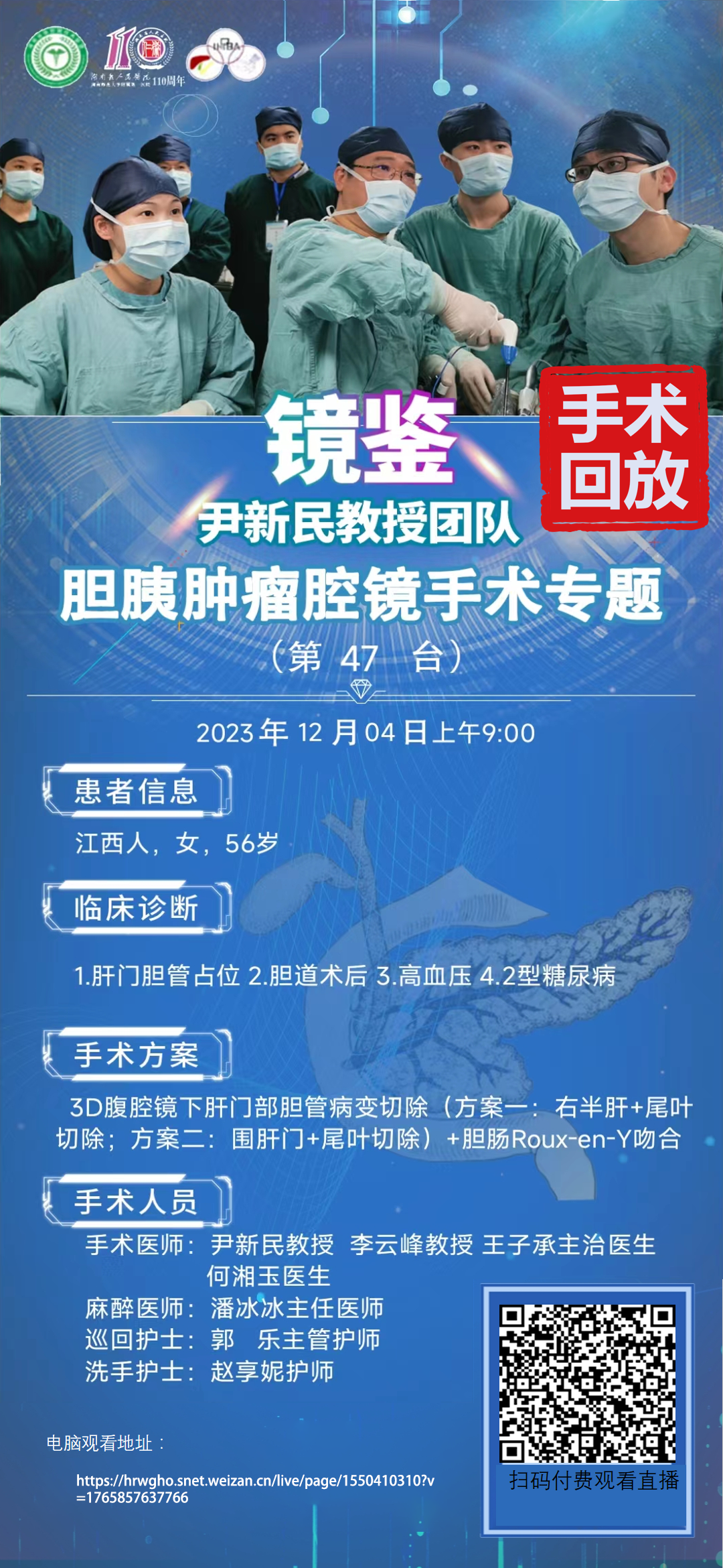 尹新民教授团队-四期胆胰肿瘤腔镜手术-第47台|腹腔镜下肝门部胆管病变切除(方案一:右半肝+尾叶切除;方案二:围肝门+尾叶切除)+胆肠Roux-en-Y吻合|1.肝门胆管占位|20231204