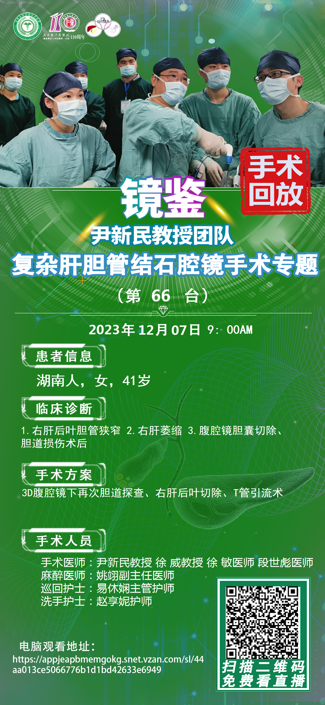 尹新民教授团队-复杂肝胆管结石腔镜手术-第65台|3D腹腔镜下肝门胆管成型、胆肠内引流术|1、胆管下段狭窄、胆胰汇合异常。2、胆囊十二指肠肠内瘘、胆囊切除胆道探查 |20231206