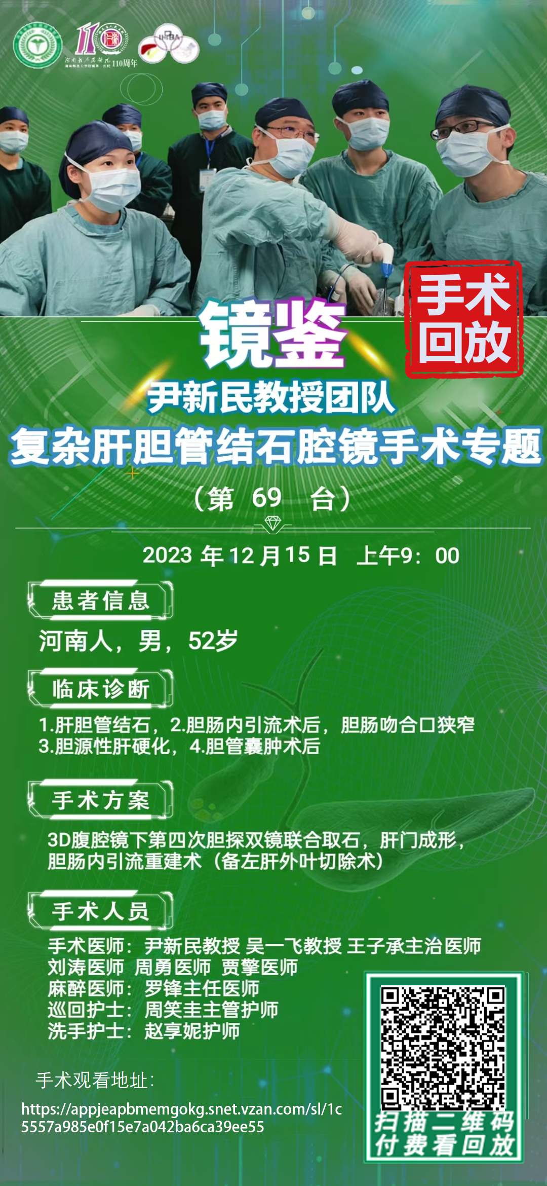 尹新民&李云峰团队-复杂肝胆管结石腔镜手术-第69台|3D腹腔镜下第四次胆探双镜联合取石,肝门成形,胆肠内引流重建术(备左肝外叶切除术)|1.肝胆管结石|20231215