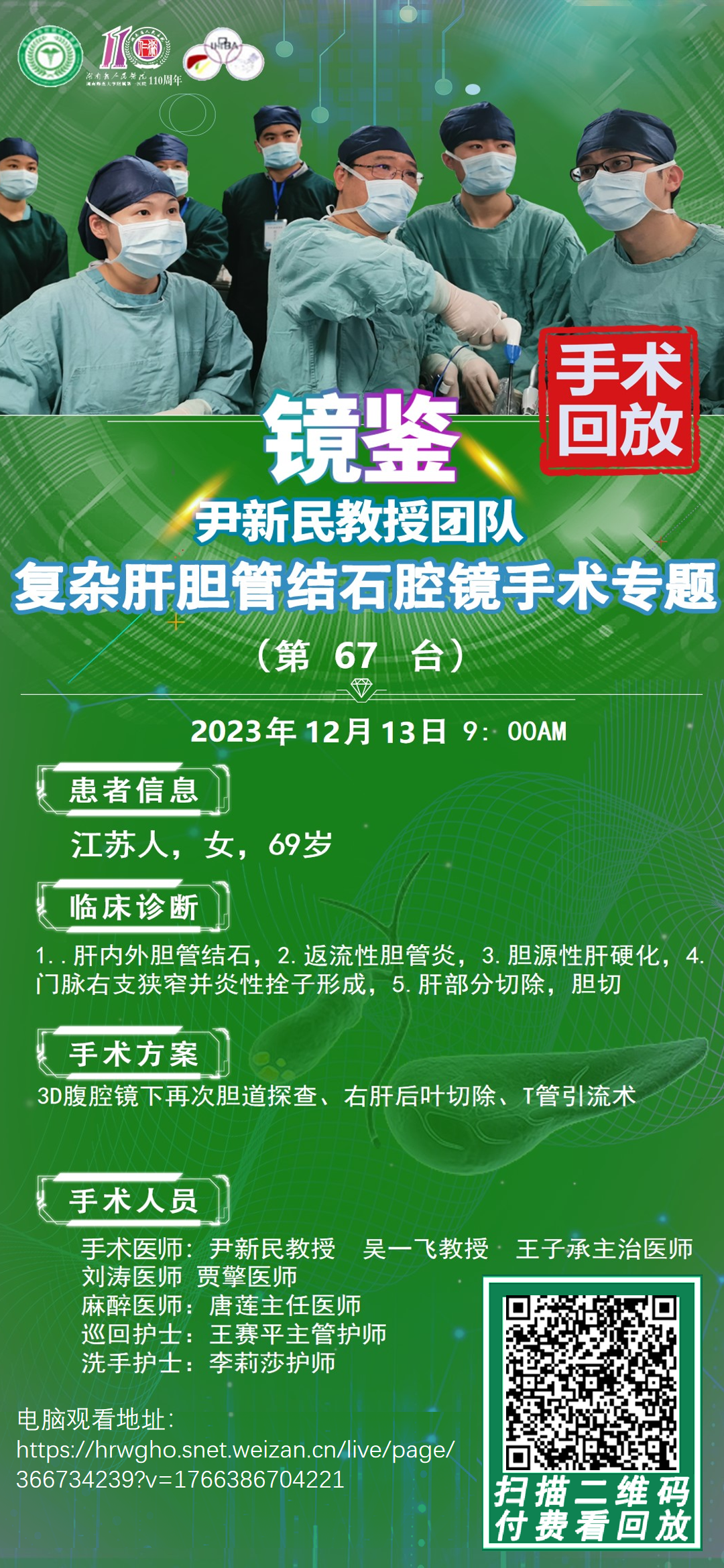 尹新民教授团队-复杂肝胆管结石腔镜手术-第67台|3D腹腔镜下再次胆道探查右肝后叶切除T管引流术|肝内外胆管结石返流性胆管炎胆源性肝硬化门脉右支狭窄并炎性拴子形成肝部分切除胆切|20231213