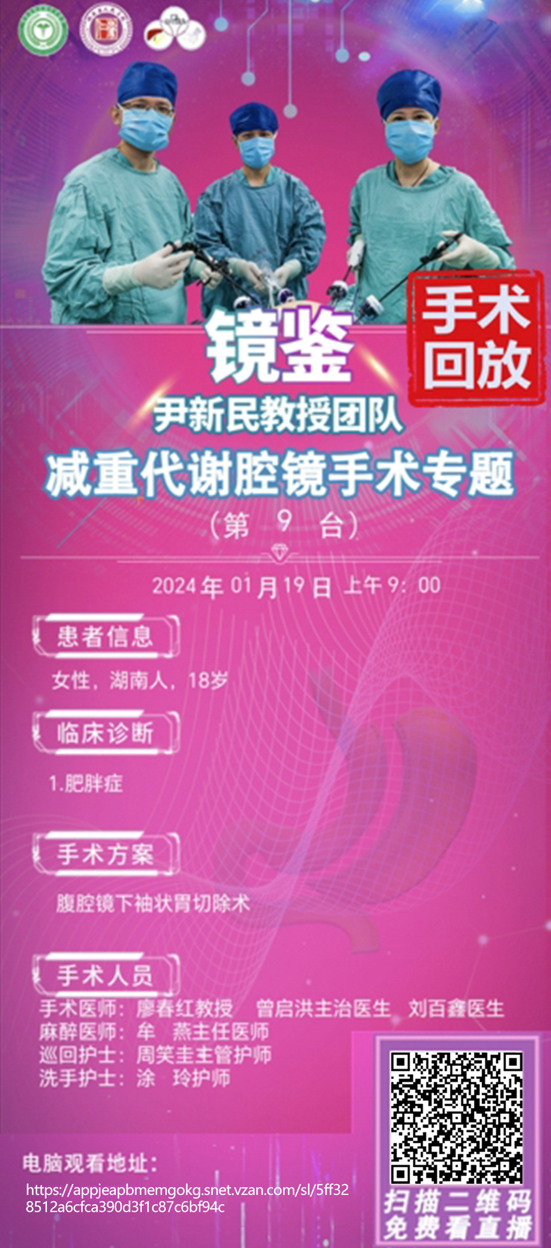 尹新民教授团队减重代谢腔镜第9台| 腹腔镜下袖状胃切除术|1.宫内膜增厚 2.非萎缩性胃炎 诊断:肥胖症 20240119