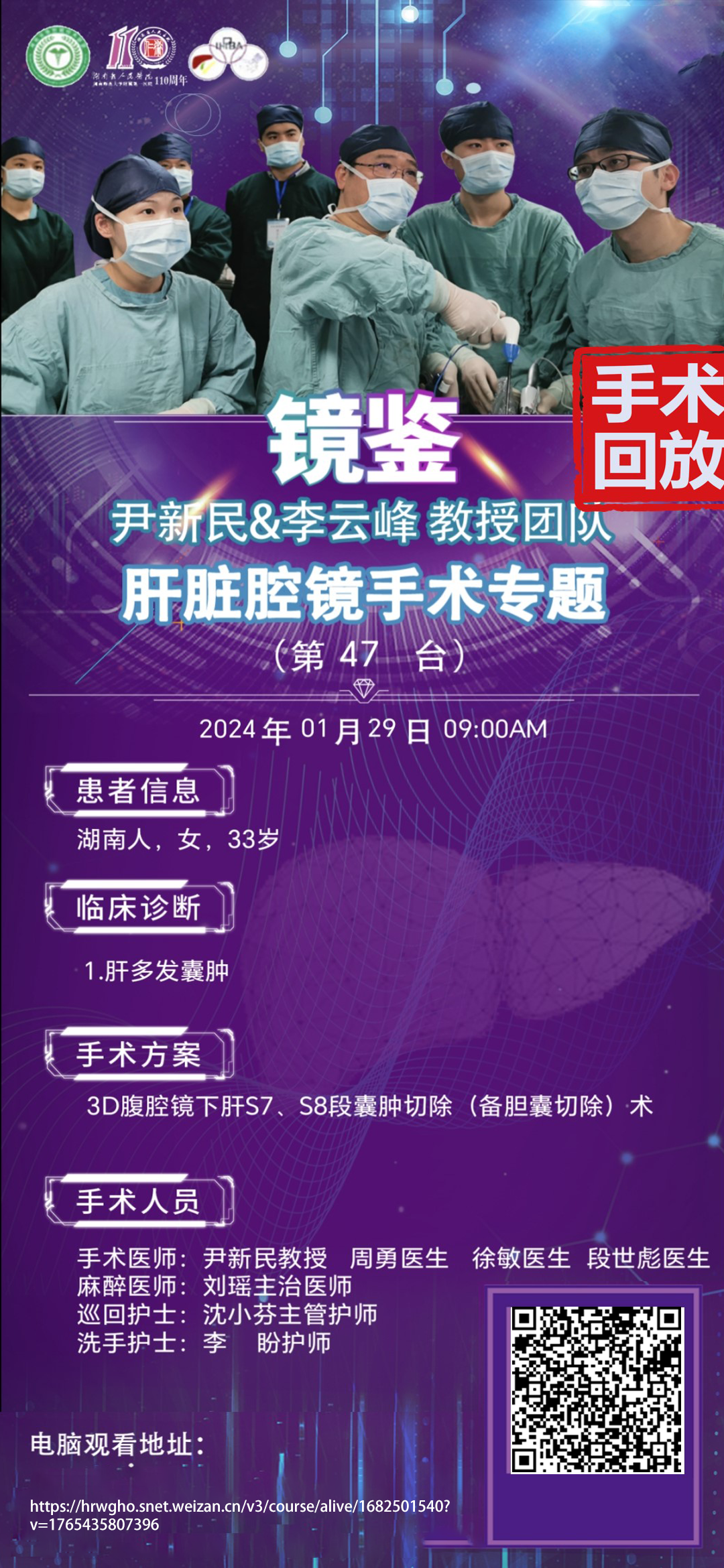 尹新民教授团队 肝脏腔镜手术专题第47台| 3D腹腔镜下肝S7、S8段囊肿切除(备胆囊切除)术|肝多发囊肿|20240129
