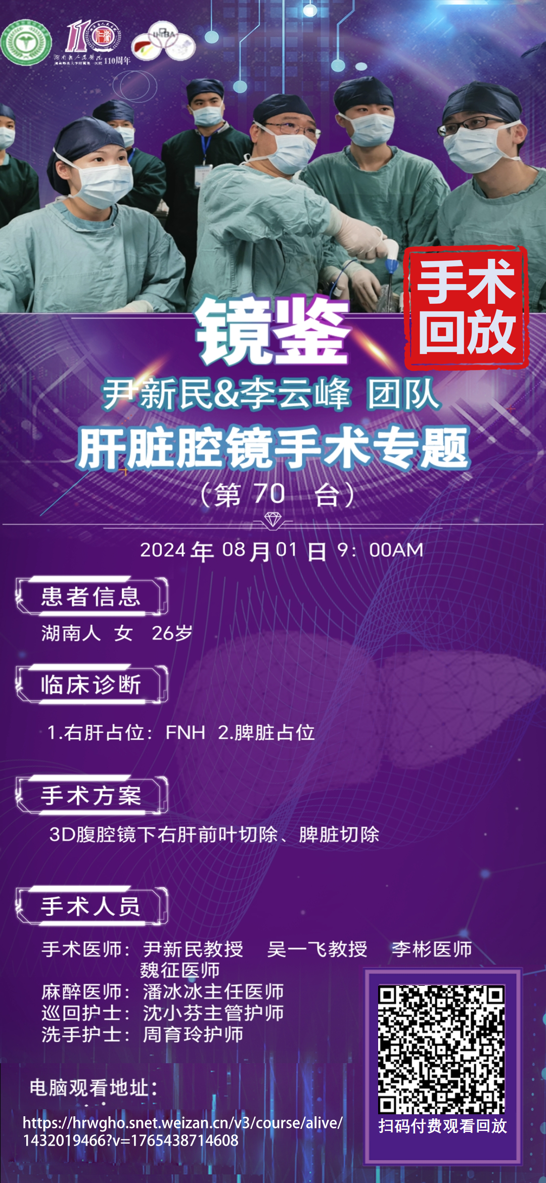 尹新民教授团队第70台肝脏|3D-4K腹腔镜下右肝前叶切除、脾脏切除|1.右肝占位:FNH 2.脾脏占位|20240801