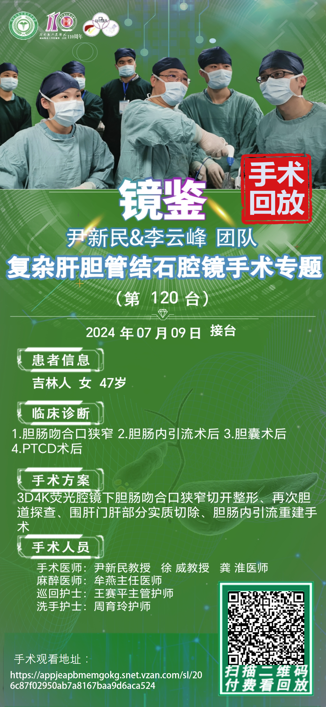 尹新民教授团队-复杂肝胆管结石腔镜手术-第120台|3D4K荧光腔镜下胆肠吻合口狭窄切开整形、再次胆道探查、围肝门肝部分实质切除、胆肠内引流重建手术|1.胆肠吻合口狭窄 |20240709