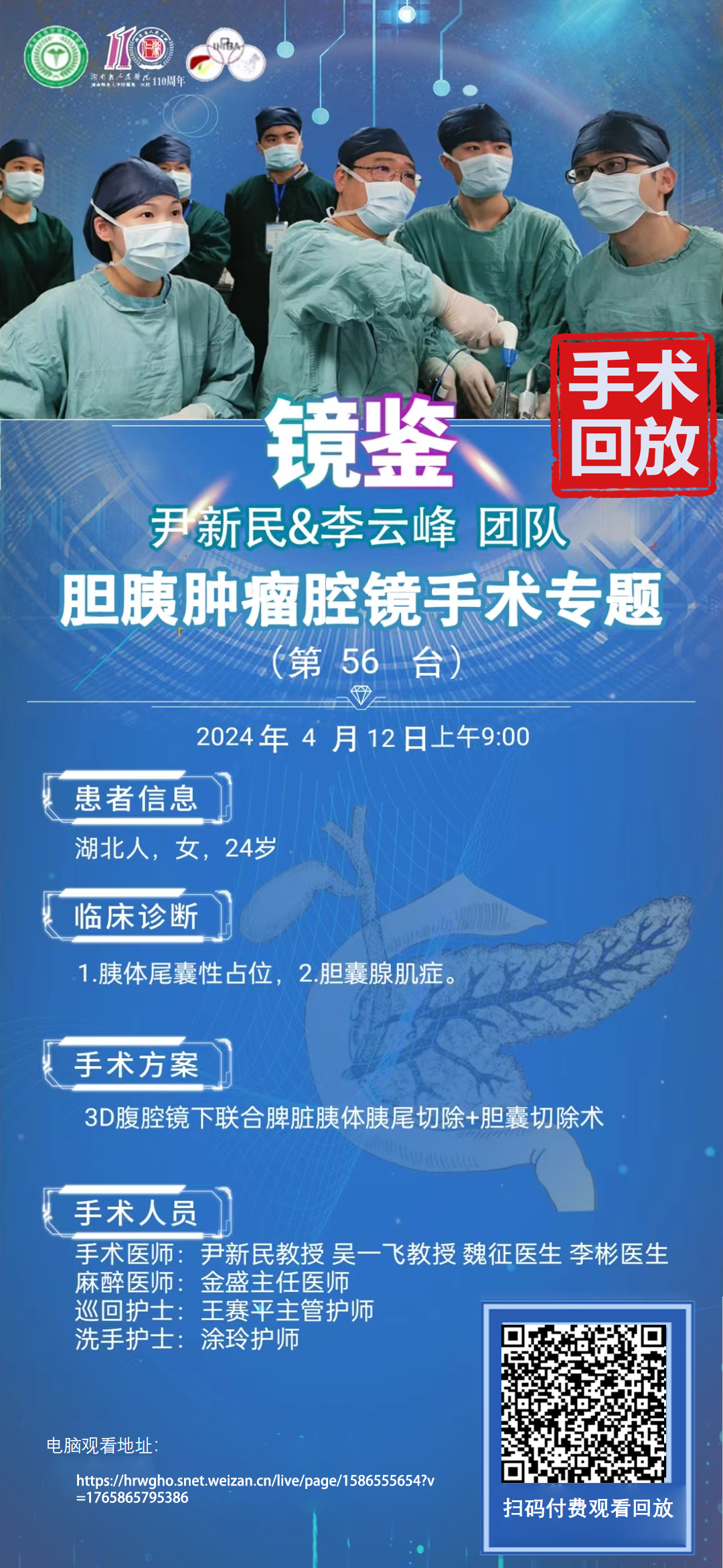 尹新民&李云峰团队四期胆胰腔镜手术第56台|1.胰体尾囊性占位,2.胆囊腺肌症|3D腹腔下联合脾脏胰体胰尾切除+胆囊切除术|20240412