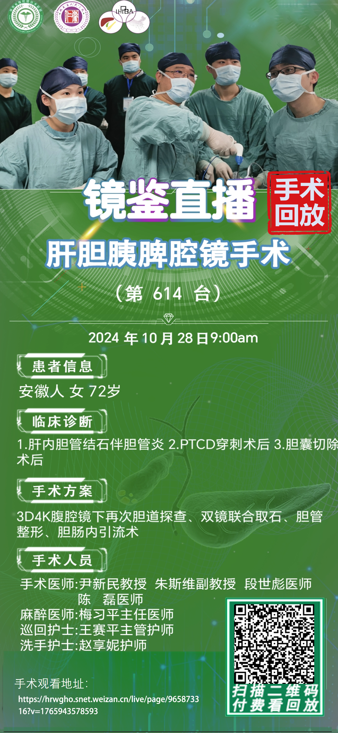 尹新民教授团队-镜鉴直播肝胆胰脾腔镜手术-第614台|3D4K腹腔镜下再次胆道探查、双镜联合取石、胆管整形、胆肠内引流术|1.肝内胆管结石伴胆管炎 |20241028