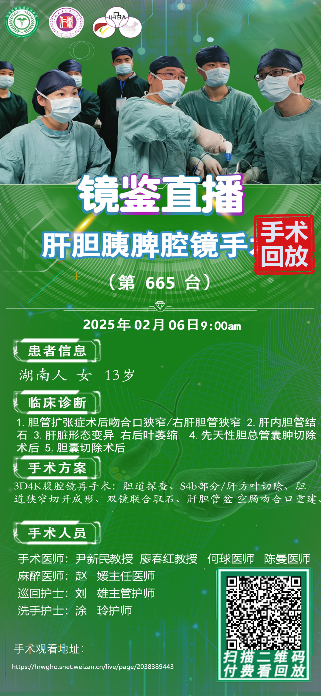 尹新民劳模创新团队镜鉴直播-第665台|3D4K腹腔镜再手术:胆道探查、S4b部分/肝方叶切除、胆道狭窄切开成形|1.胆管扩张症术后吻合口狭窄/右肝胆管狭窄 2.肝内胆管结石|20250206
