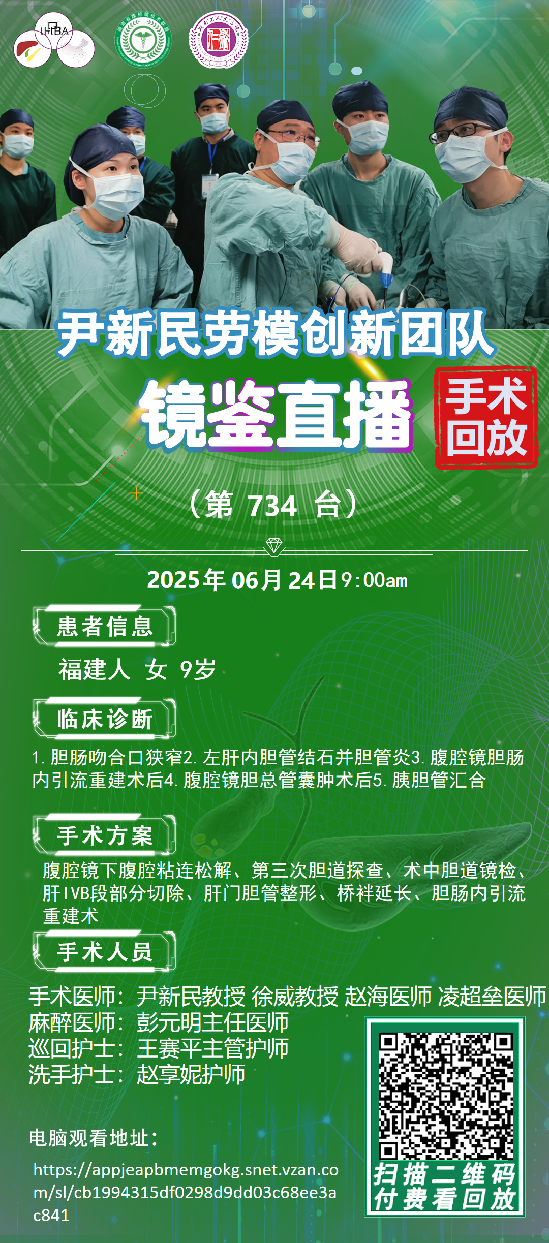 尹新民劳模创新团队镜鉴直播-第735台|3D4K腹腔镜下再次胆道探查、吻合口切开、双镜联合取石、胆管整形、胆肠内引流重建术|肝胆管结石伴胆管炎|20250625