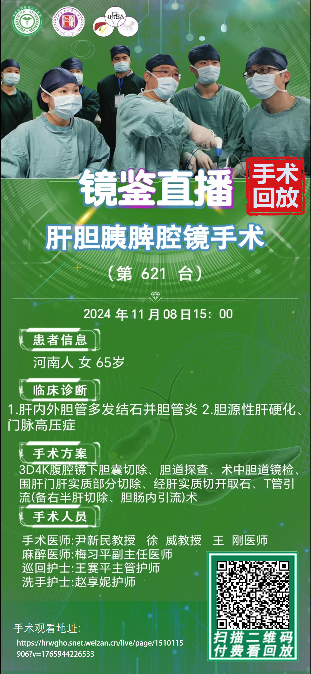 尹新民教授团队-镜鉴直播肝胆胰脾腔镜手术-第621台|3D4K腹腔镜下胆囊切除、胆道探查、术中胆道镜检、围肝门肝实质部分切除、经肝实质切开取石 |20241108