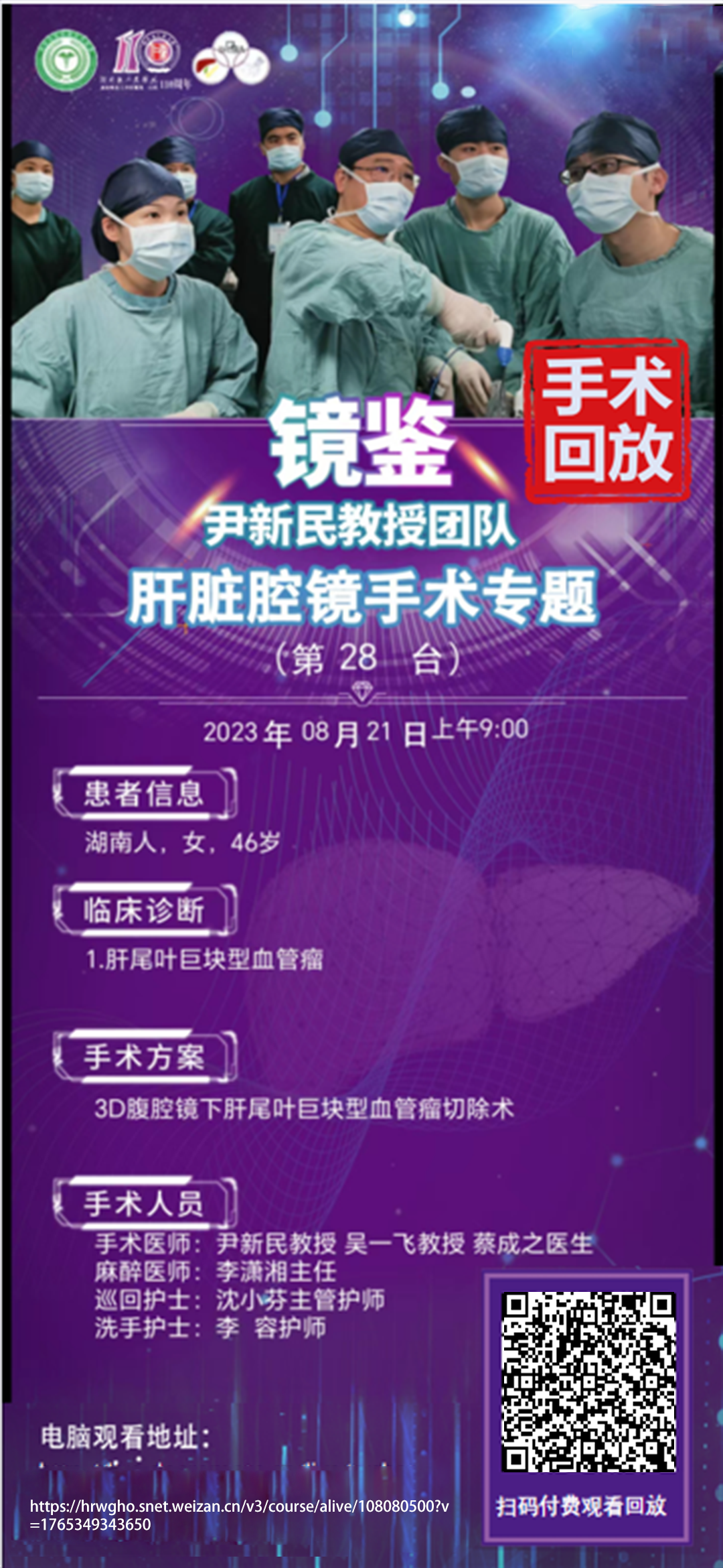 尹新民教授团队肝脏腔镜第28台|3D腹腔镜下肝尾叶巨块型血管瘤切除术1.肝尾叶巨块型血管瘤|20230821