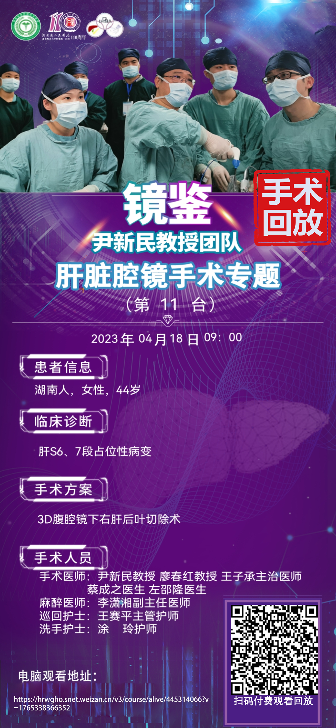 尹新民教授团队肝脏腔镜第11台|3D腹腔镜下右肝后叶切除术|肝S6、7段占位性病变|20230418