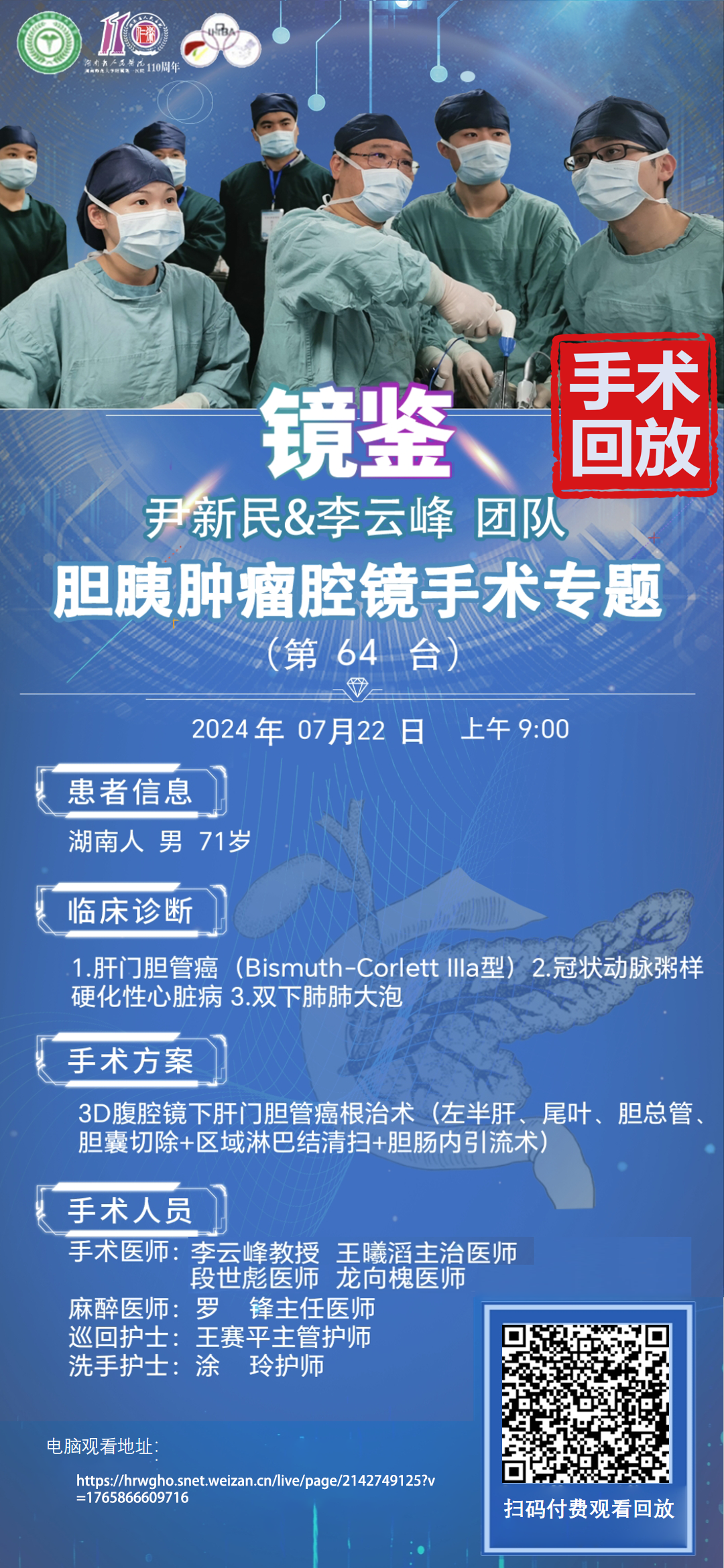 尹新民&李云峰团队四期胆胰腔镜手术第64台|3D腹腔镜下肝门胆管癌根治术(左半肝、尾叶、胆总管、胆囊切除+区域淋巴结清扫+胆肠内引流术)|1.肝门胆管癌|20240722