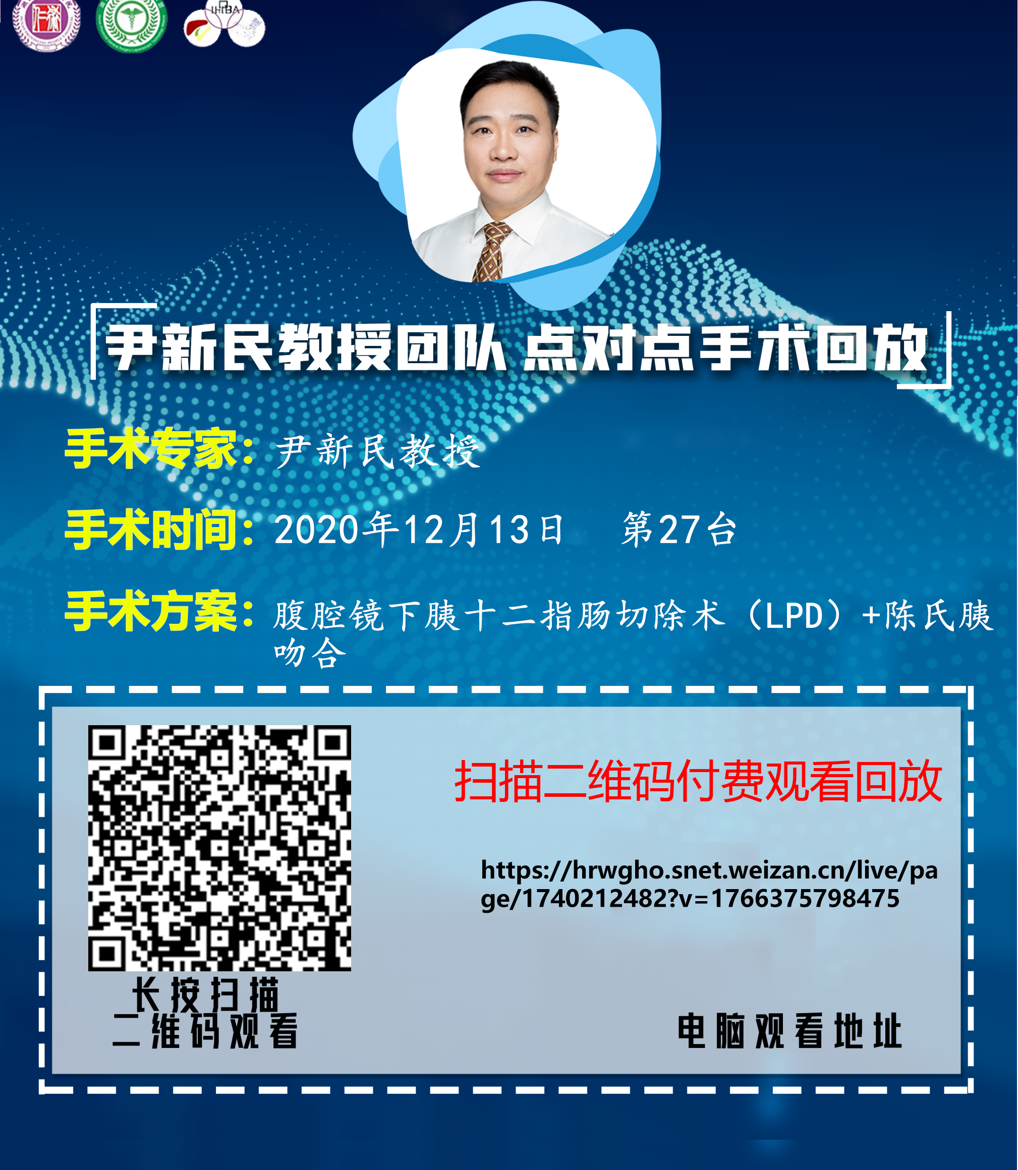 尹新民教授团队点对点第27台|腹腔镜下胰十二指肠切除术(LPD)+陈氏胰吻合|20201213