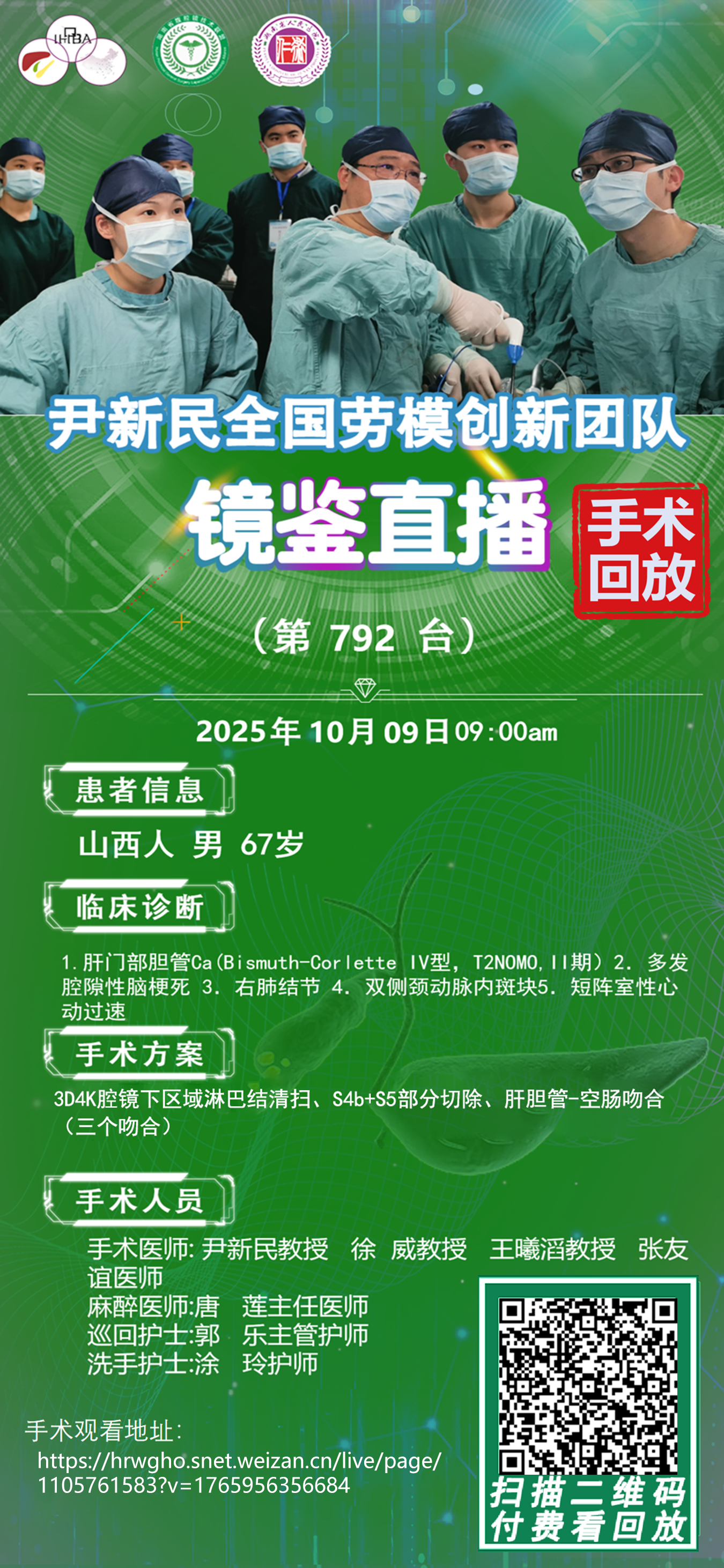 尹新民劳模创新团队镜鉴直播-第792台|3D4K腹腔镜腹腔镜下肝门胆管癌根治(右半肝+全尾叶切除、左肝胆管-空肠Roux-en-Y吻合)手术|1.肝门部胆管Ca|20251009