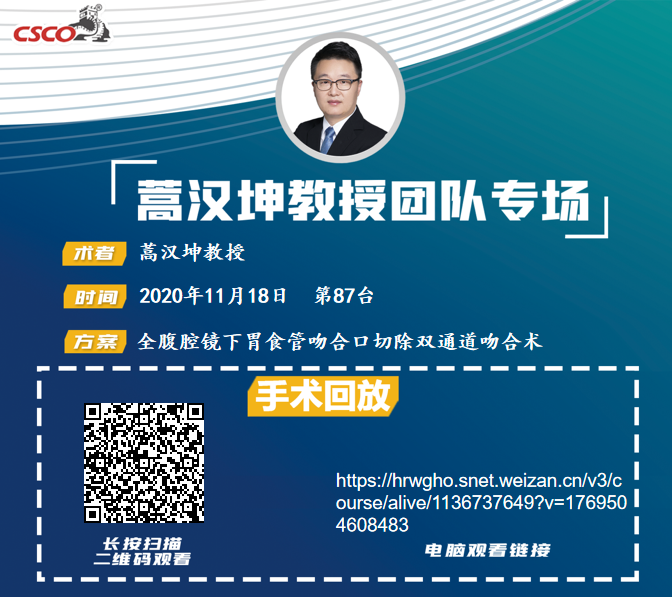 蒿汉坤教授团队第87台|全腹腔镜下胃食管吻合口切除双通道吻合术|胃食管吻合|20201118