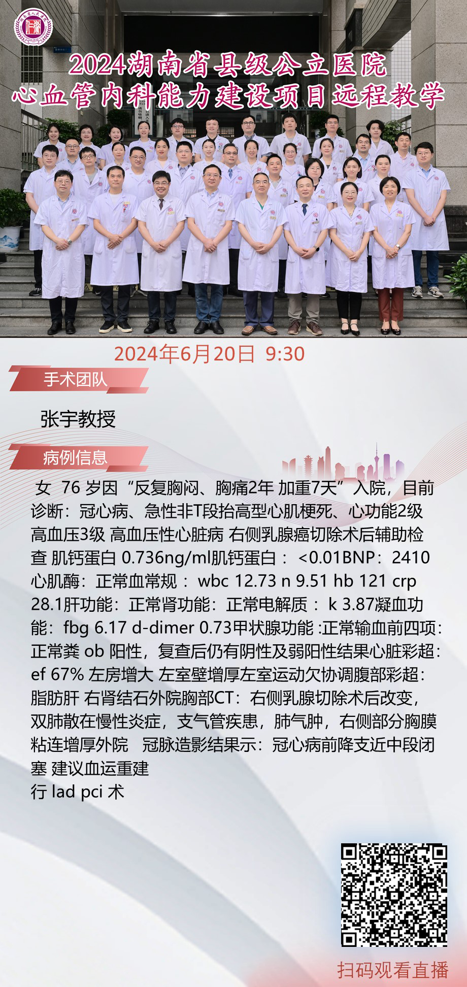 心血管内科-张宇教授团队|行ladpci术|冠心病、急性非T段抬高型心肌梗死、心功能2级高血压3级 高血压性心脏病 右侧乳腺癌切除术后辅助检查肌钙蛋白|20240620