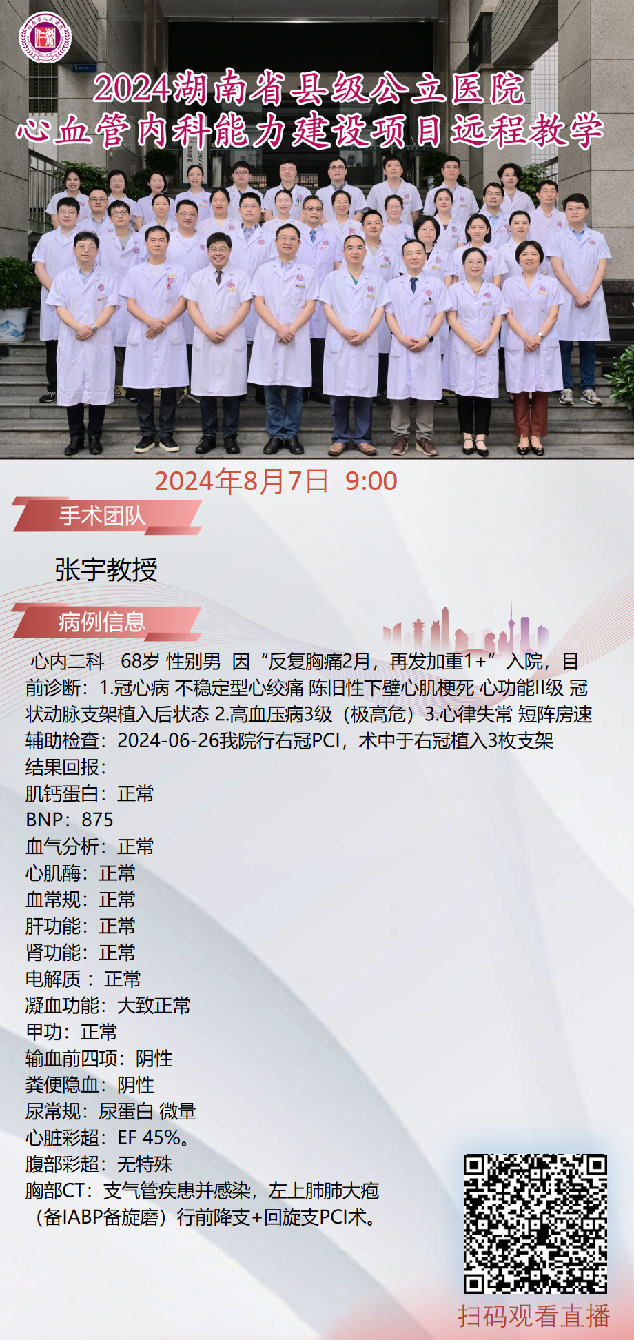 心血管内科-张宇教授团队|行lad+D1分叉pci|:1.冠心病不稳定生心绞痛心功能级2.高血压病2级(很高危)3.高脂血症4.脂肪肝|20240805