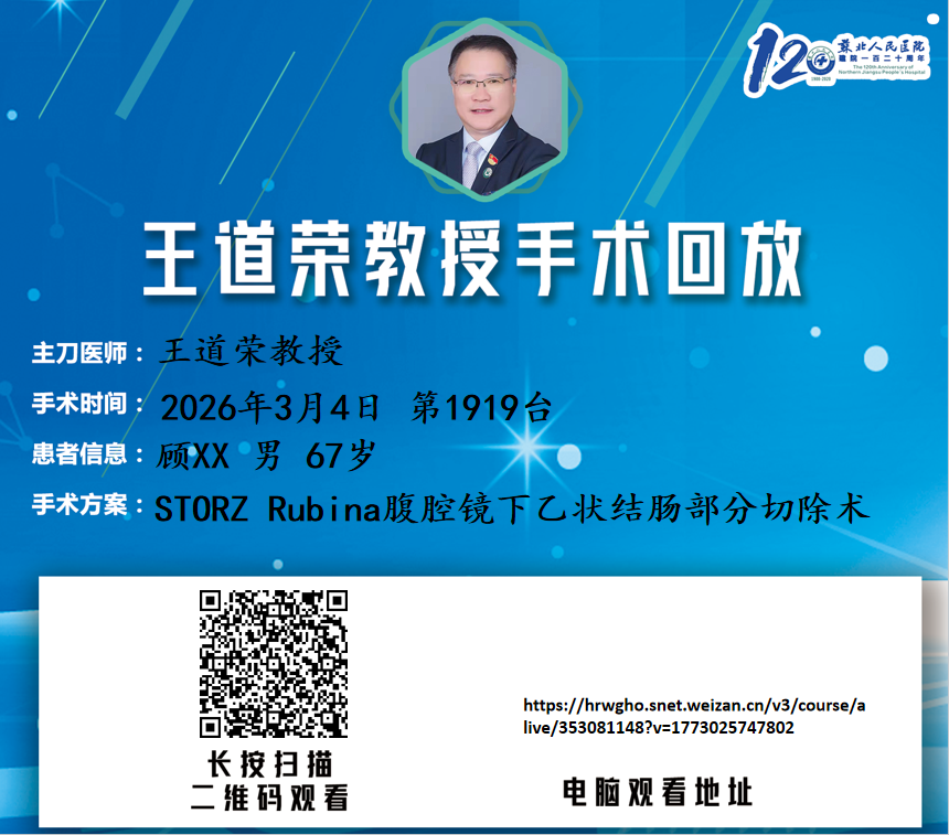 王道荣教授团队第1920台|直肠恶性肿瘤 cT3N1aM0,IIIb期 达芬奇机器人辅助操作腹腔镜下直肠癌根治+预防性回肠造口(B型缝合法)|20260304