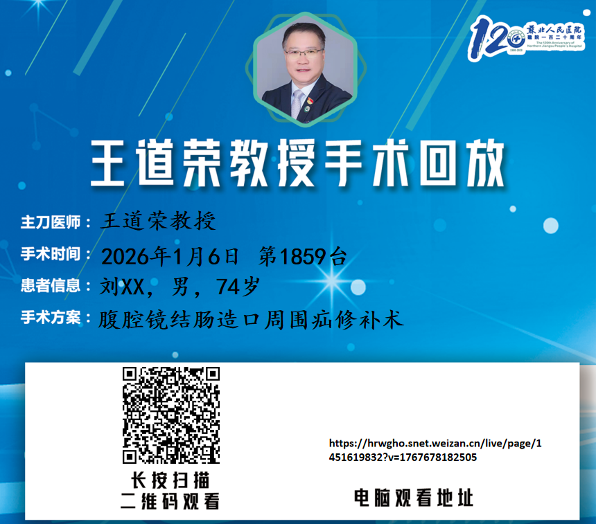 王道荣教授团队第1859台|腹腔镜结肠造口周围疝修补术|结肠造口旁疝 ;直肠恶性肿瘤个人史 ;人工造口状态 ;肺的其他疾患 双肺多发结节 ;通气功能障碍|20260106