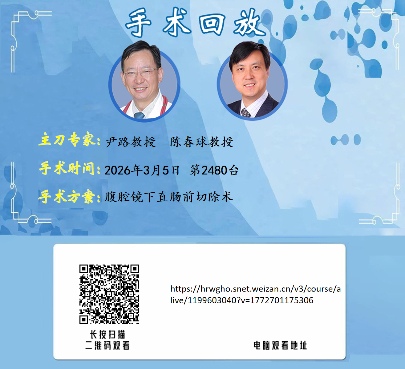 尹路教授团队第2480台 | 腹腔镜下直肠前切除术 | 直肠肿瘤 |20260305