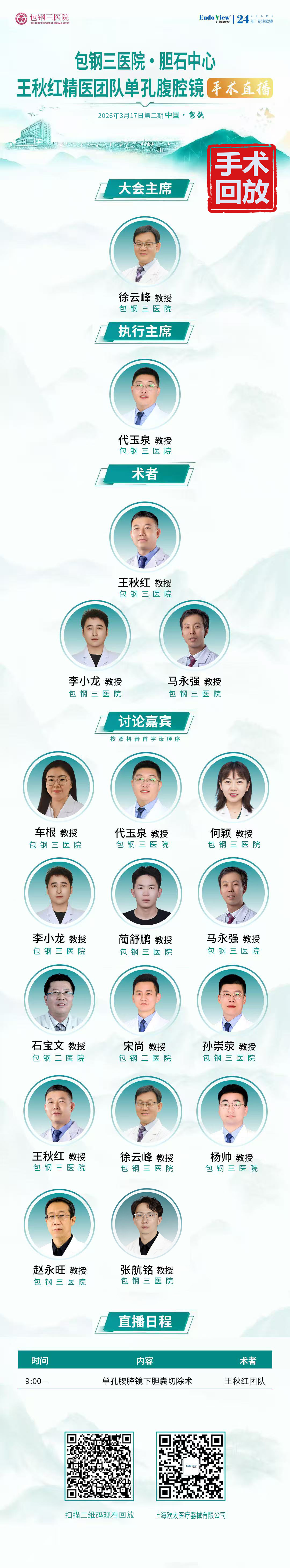 尹新民劳模创新团队镜鉴直播-第872台|3D4K腹腔镜再次胆道探查取石,胆肠吻合口狭窄切开,肝部分切除,肝门胆管整形,胆肠内引流重建|1.肝胆管结石并胆管炎;|20260319