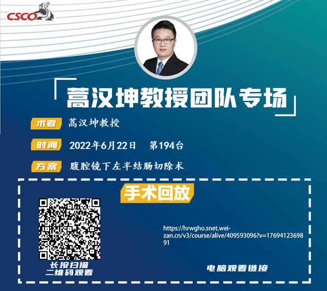 蒿汉坤教授团队第194台|腹腔镜下左半结肠切除术|降结肠癌|20220622