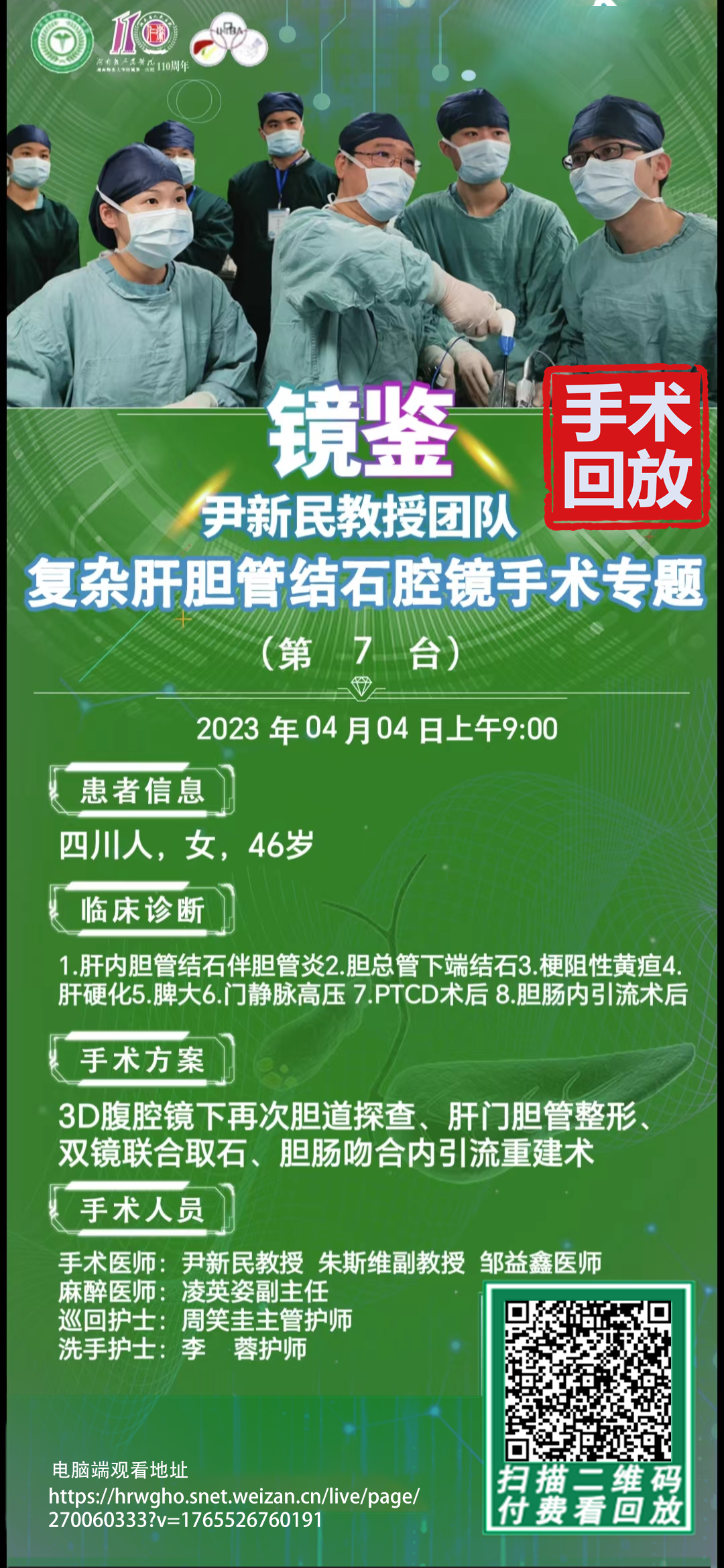 尹新民教授第7台复杂肝胆|3D腹腔镜联合取石胆肠吻合内引流重建术|1.肝内胆管结石伴胆管炎 2.胆总管下端结石 3.梗阻性黄疸 4.肝硬化 |20230404